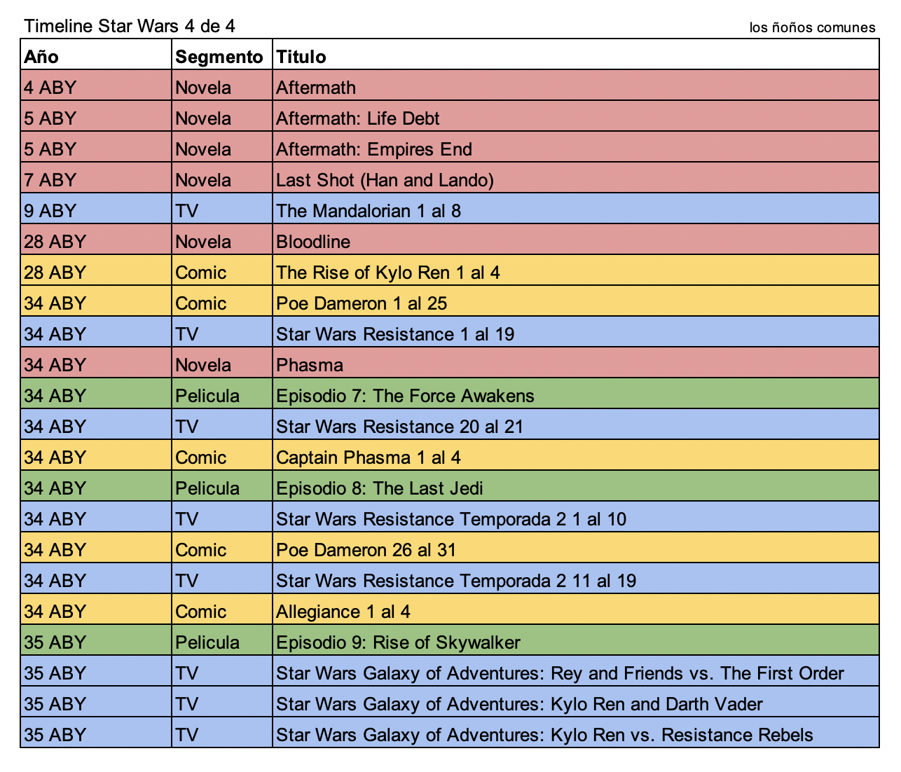 | 35 ABY | Pelicula | Episodio 9: Rise of Skywalker |
